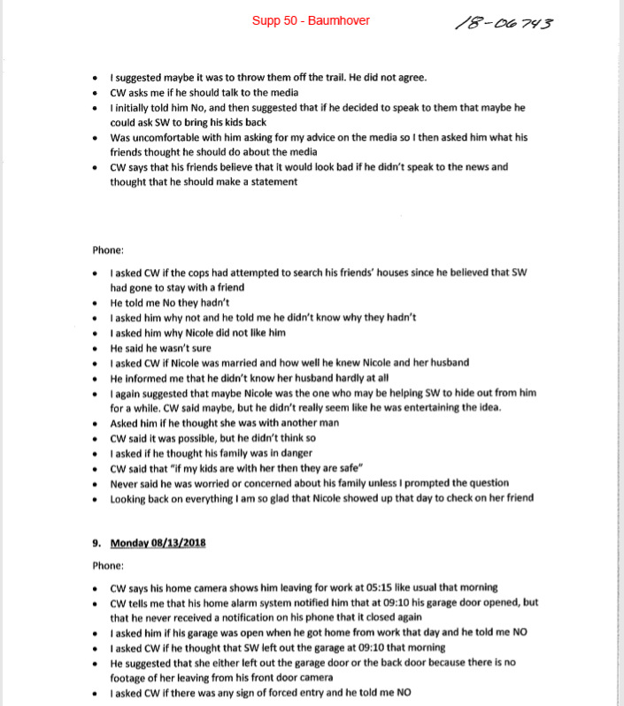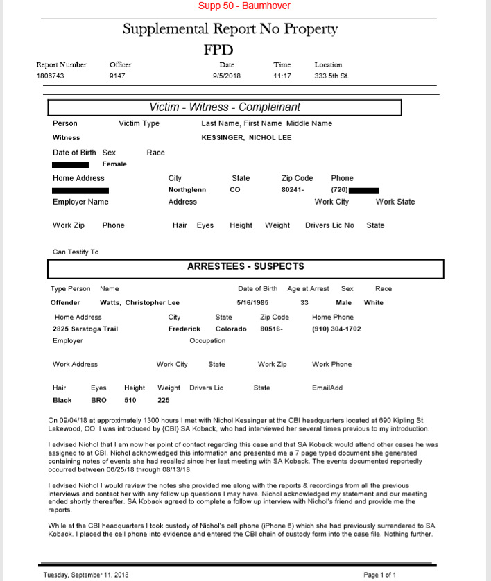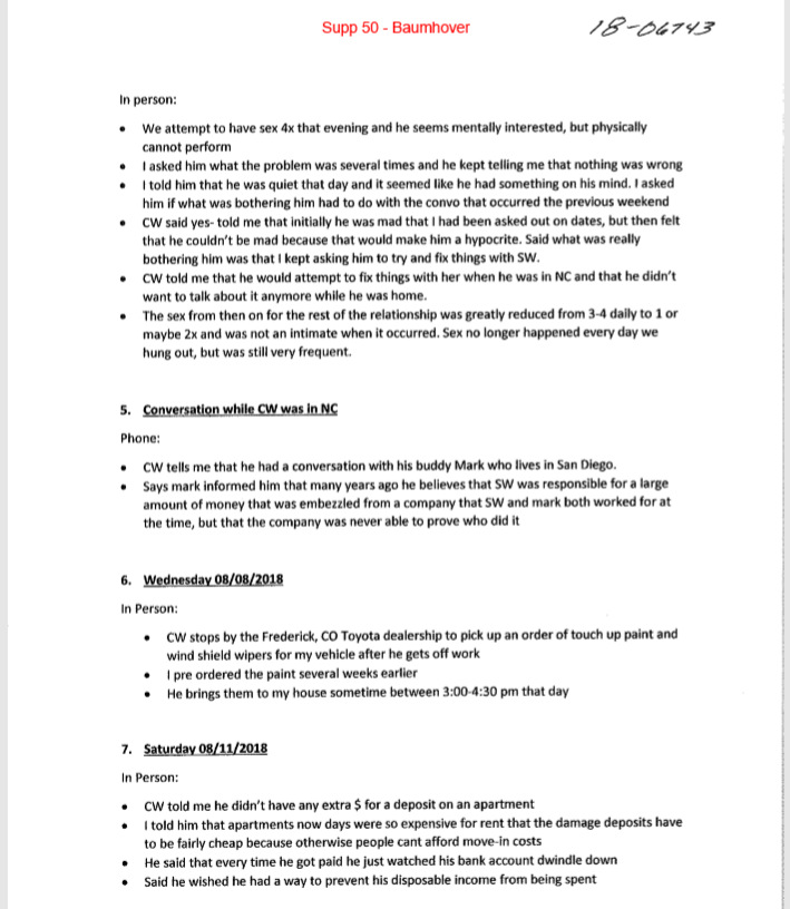 Frank Rzucek’s Letter to Detective Baumhover on his observations of Chris Watts’ Deteriorating Relationship with Bella and Ceecee