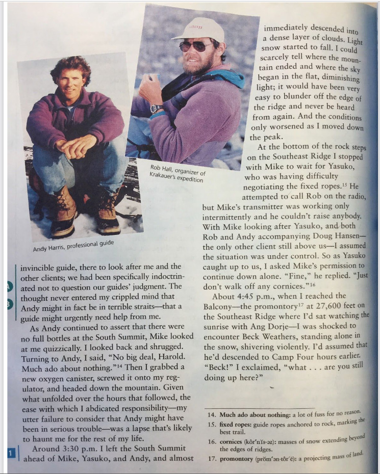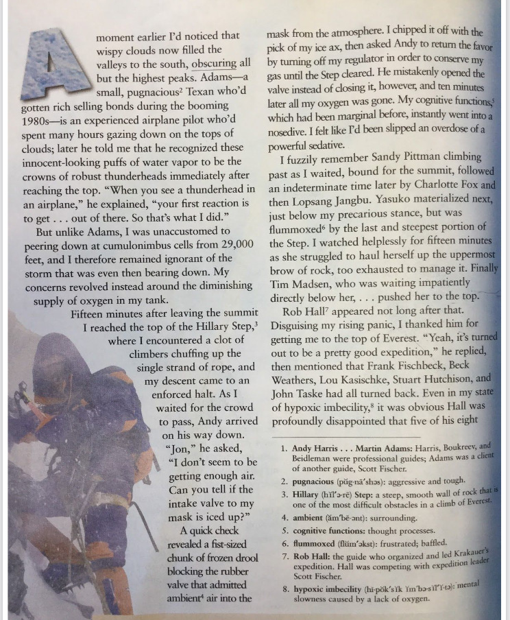 Three articles, three different viewpoints of the 96 Everest Disaster. The first is an excerpt from Krakauer’s article published in OUTSIDE magazine. It deals with a section of the descent.